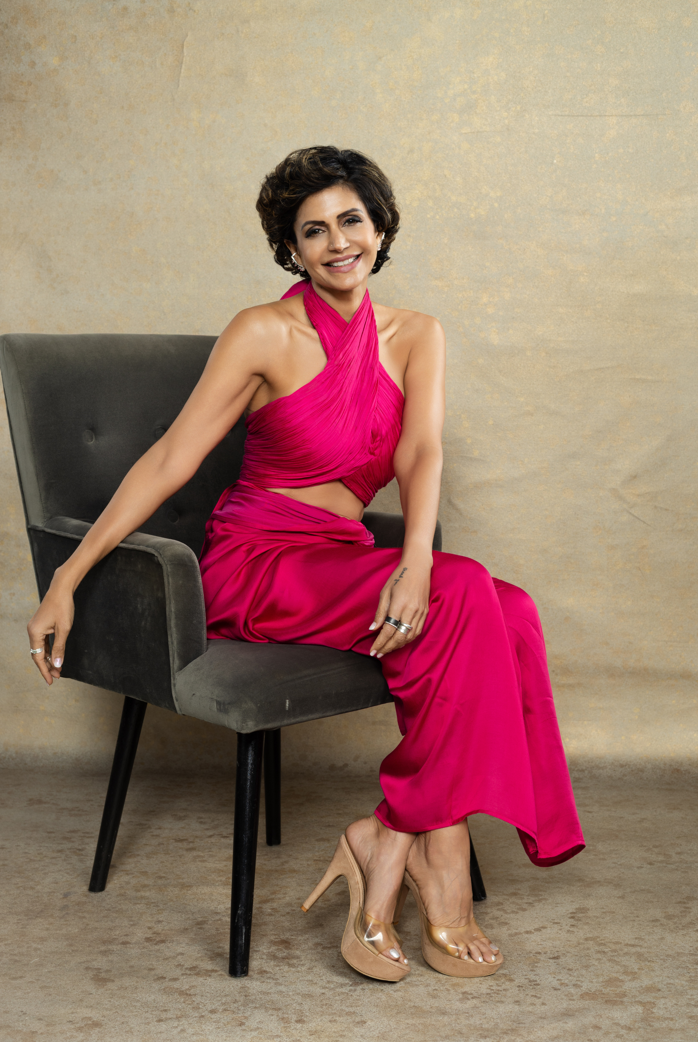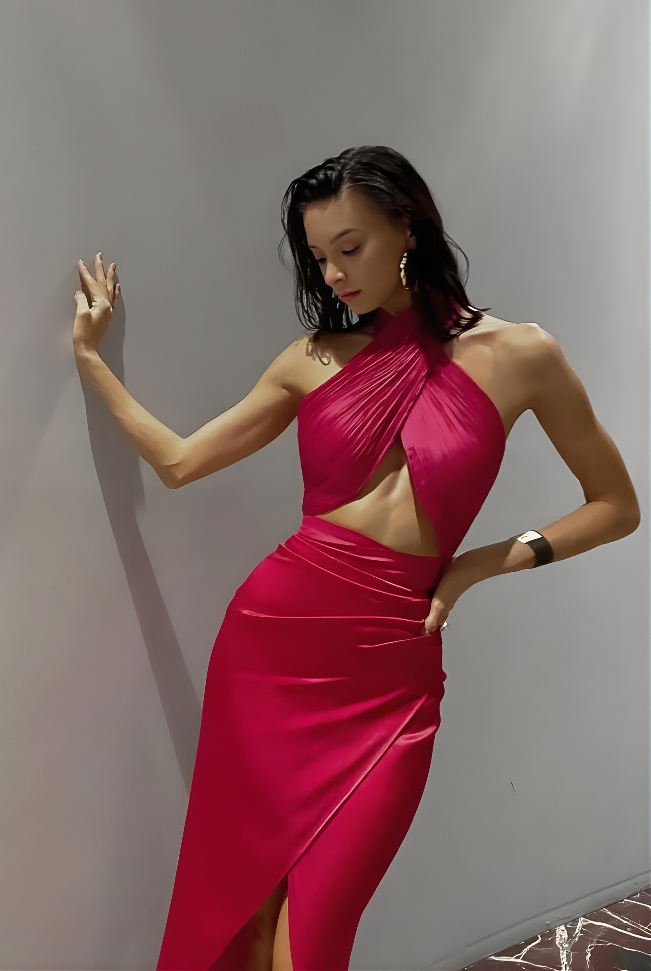- Halter neck drape top crafted from smooth modal satin in a body-fit silhouette