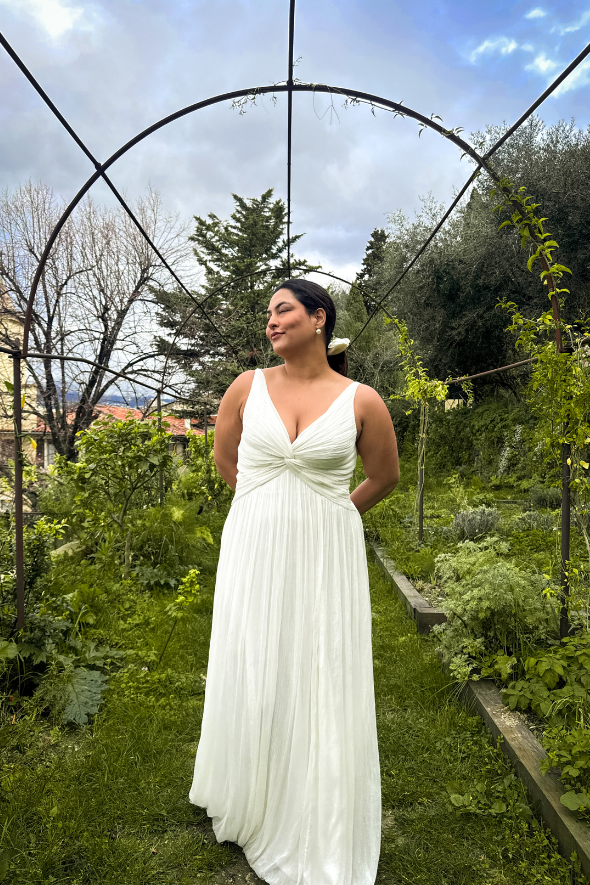 - Ruched bodice, bringing a whisper of romance to this ethereal silhouette