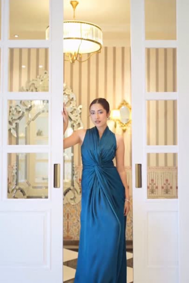 - Sculpted in lustrous emerald modal satin with a liquid drape