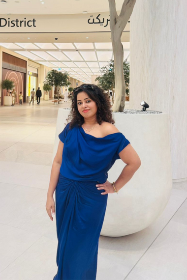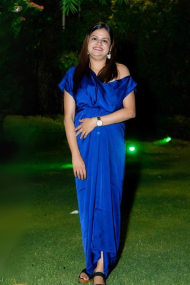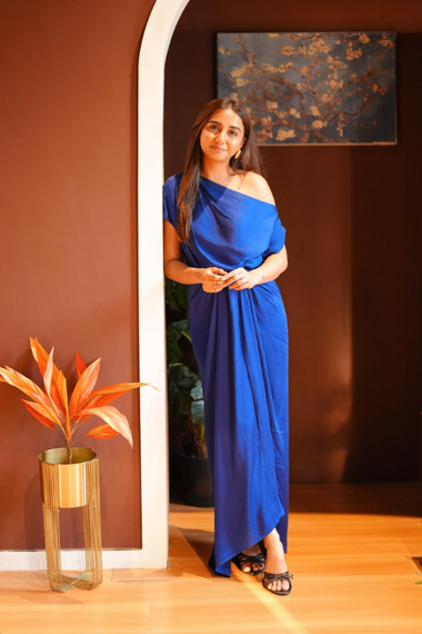 - Paired with a versatile multiway draped skirt in matching blue modal satin