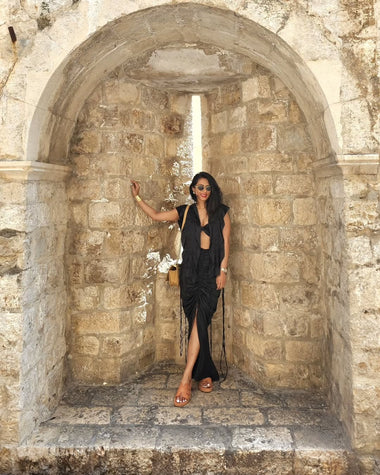 Please remember to dry clean our garments for the best care, and shield them from direct sunlight to prevent color variation. Initial washes of hand-dyed items may exhibit color bleeding, which stabilizes over time, creating graceful fades. Additionally, handwoven fabrics like muslin can have tiny black spots and thin thread lines that are natural hallmarks of their beauty and craftsmanship. Embrace these unique qualities that make each piece special.