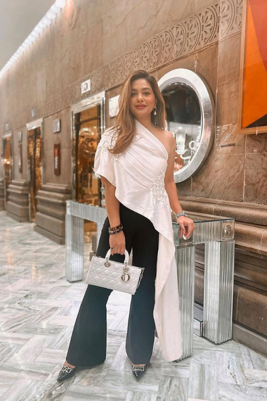 - Off-shoulder asymmetric top crafted from handmade vegan mashru