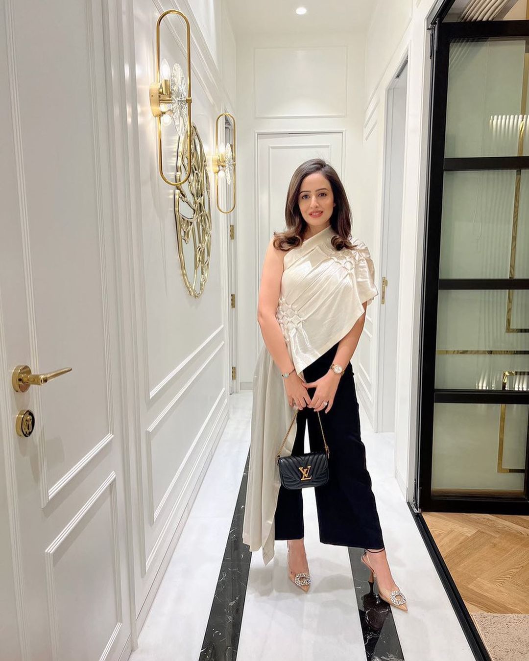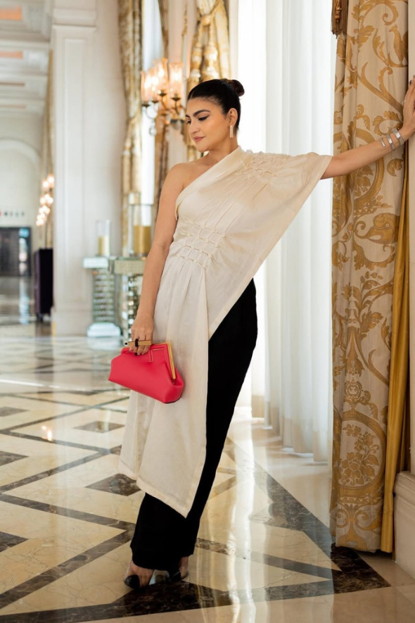 - One-shoulder asymmetric top crafted from handmade vegan mashru