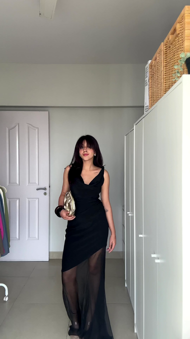 - The twisted strap as an added detail with gathered pleats on the waist and a fitted silhouette, creating a statement-making effect.