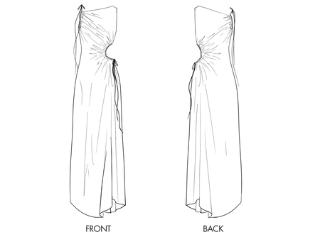 - Soft gathers sculpted across the bodice into a ruched side cutout