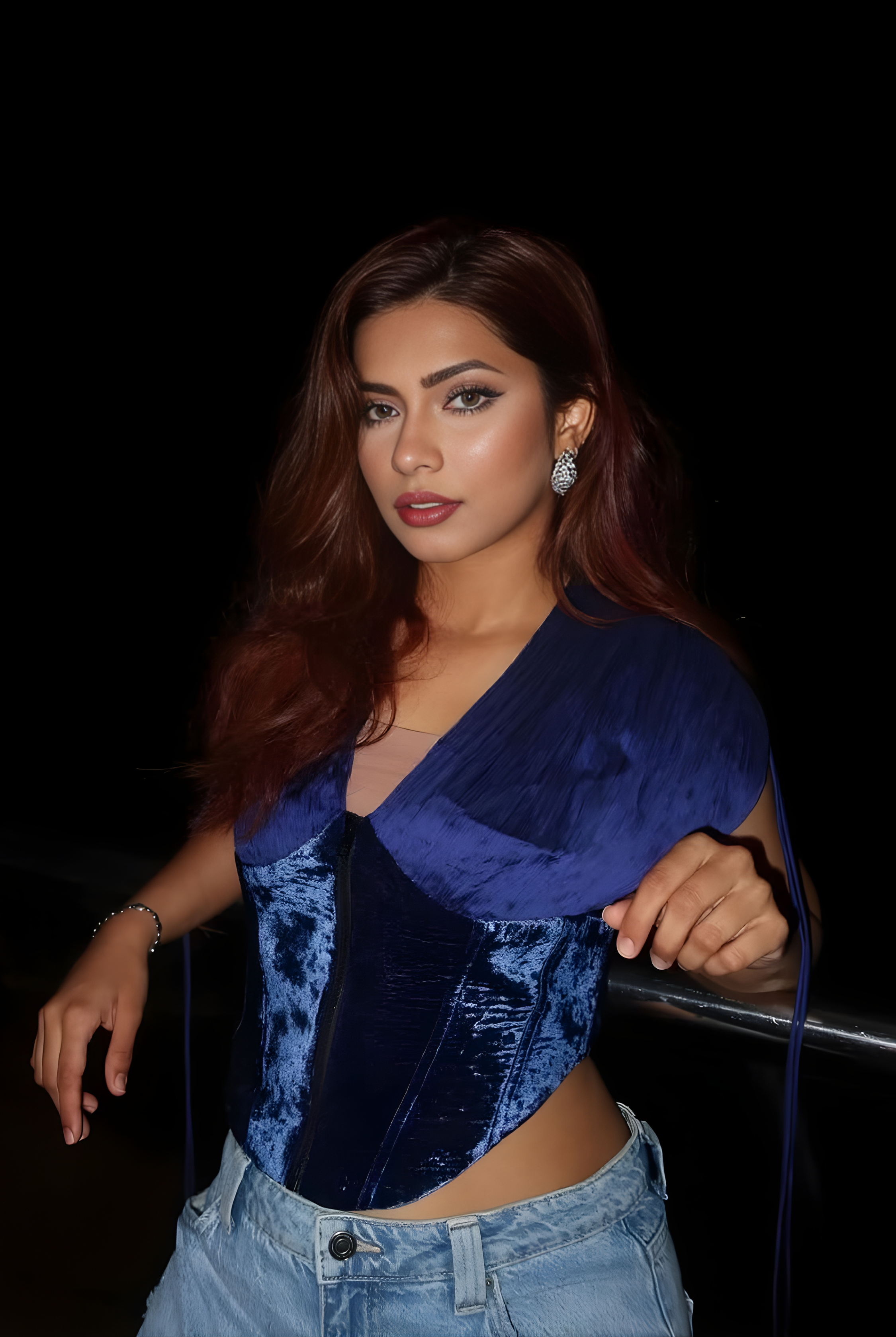 - Signature hand-ruching in lustrous modal satin blending into a sculpted velvet corset